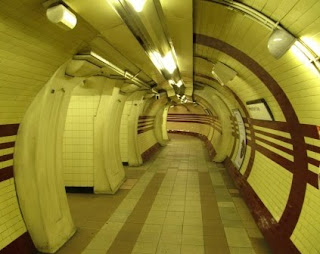 Zoals bekend is het metrosysteem in Londen het oudste ter wereld (sinds 1863), en de kleine, gebogen gangenstelsels van de oudste stations zagen er, met hun genagelde staal, gietijzeren hekwerken en met prachtig, geornamenteerd, keramisch werk betegelde wanden, ronduit fantastisch uit. Sterker nog: ze brachten me door hun futuristische karakter, maar stammend uit begin vorige eeuw, enigszins in verwarring. Veel meer dan de stations en de onderaardse gangen van de U-bahn in Berlijn bijvoorbeeld, deden ze aan het interieur van een ruimteschip denken – dat dus al een eeuw eerder gebouwd was. Iedere keer weer was het alsof ik me ondergronds in een tijdmachine bevond.