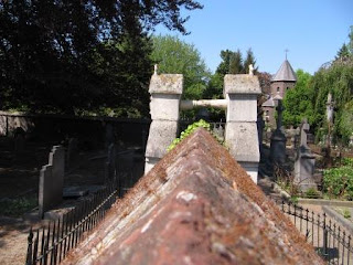 Onlangs was, met pijn in het hart, de laatste eigenaar van de sigarenfabriek nog op bezoek geweest. Die woonde ondertussen, vanwege onverkwikkelijkheden in de familie, in een villa over de grens, en kwam zelden meer in Roermond. Hij zou, net als wij, het pand nog zien zoals het was, want binnenkort gaat er een grondige renovatie plaatsvinden. De zonovergoten lege zalen bovenin boden door gaas achter de ramen al mooi gefilterd zicht op de stad, maar we gingen verder en stonden, nog geen kwartier na mijn aarzeling voor de deur, al op het dak en keken daar past echt uit over Roermond. Ik speurde over de daken, de boomkruinen en het spoor, en zag daar de toren van de Kapel nabij het oude kerkhof dat voor die middag eigenlijk onze bestemming was.